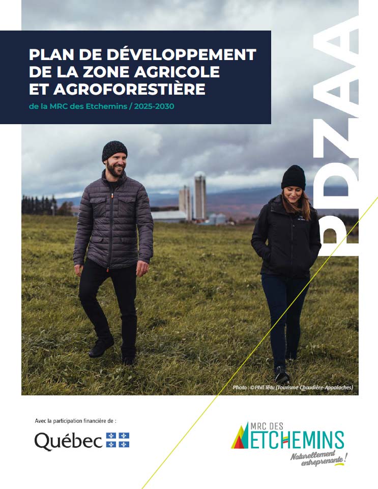Le Plan de développement de la zone agricole et agroforestière de la MRC des Etchemins (PDZAA) révisé a été adopté en octobre 2025. La révision a été rendue possible grâce à l’appui financier du ministère de l’Agriculture, des Pêcheries et de l’Alimentation dans le cadre du Programme de développement territorial et sectoriel 2023-2026.