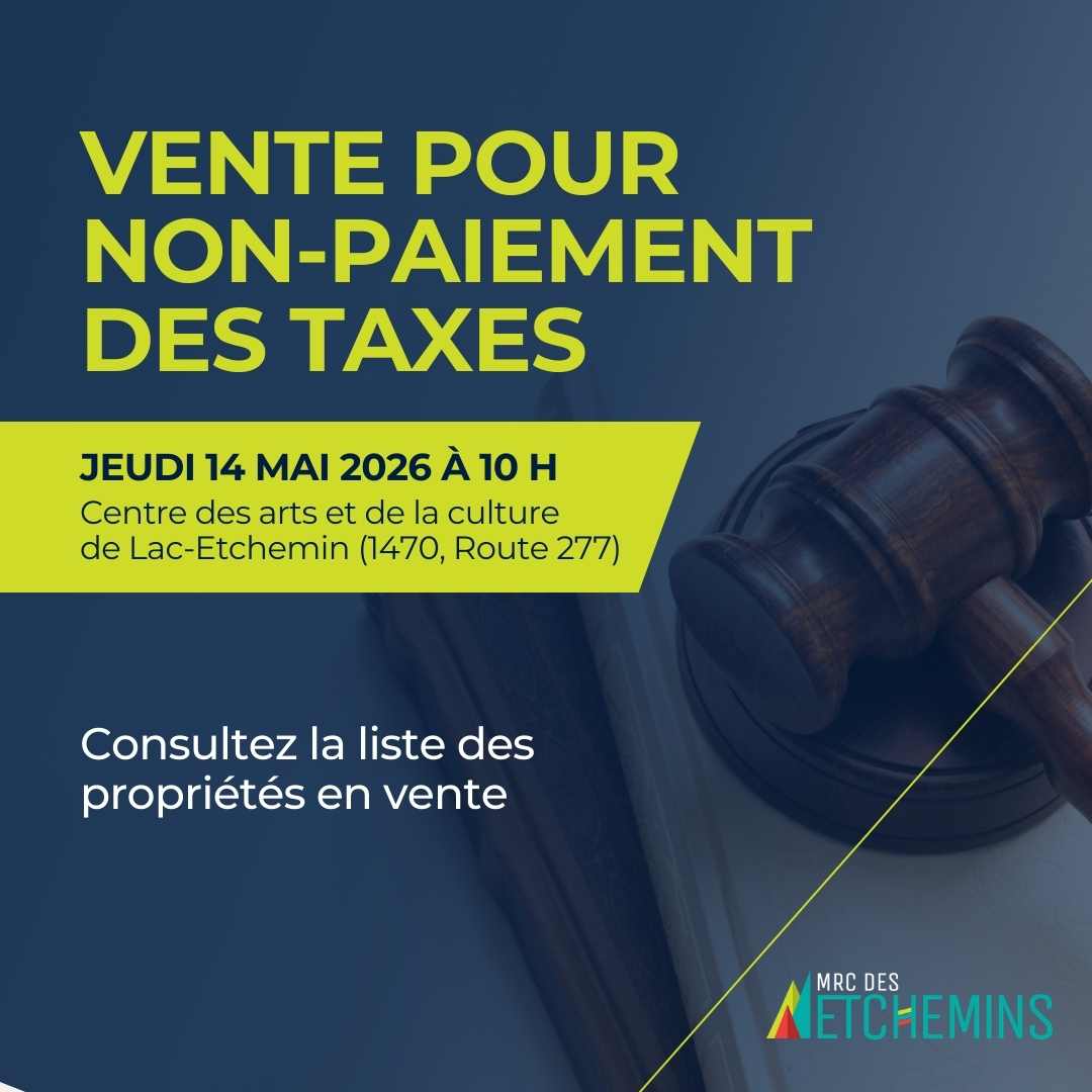 - Suite au paiement, la MRC des Etchemins remet sur place à l’adjudicataire un reçu et un certificat d’adjudication (art. 1036, Code municipal).